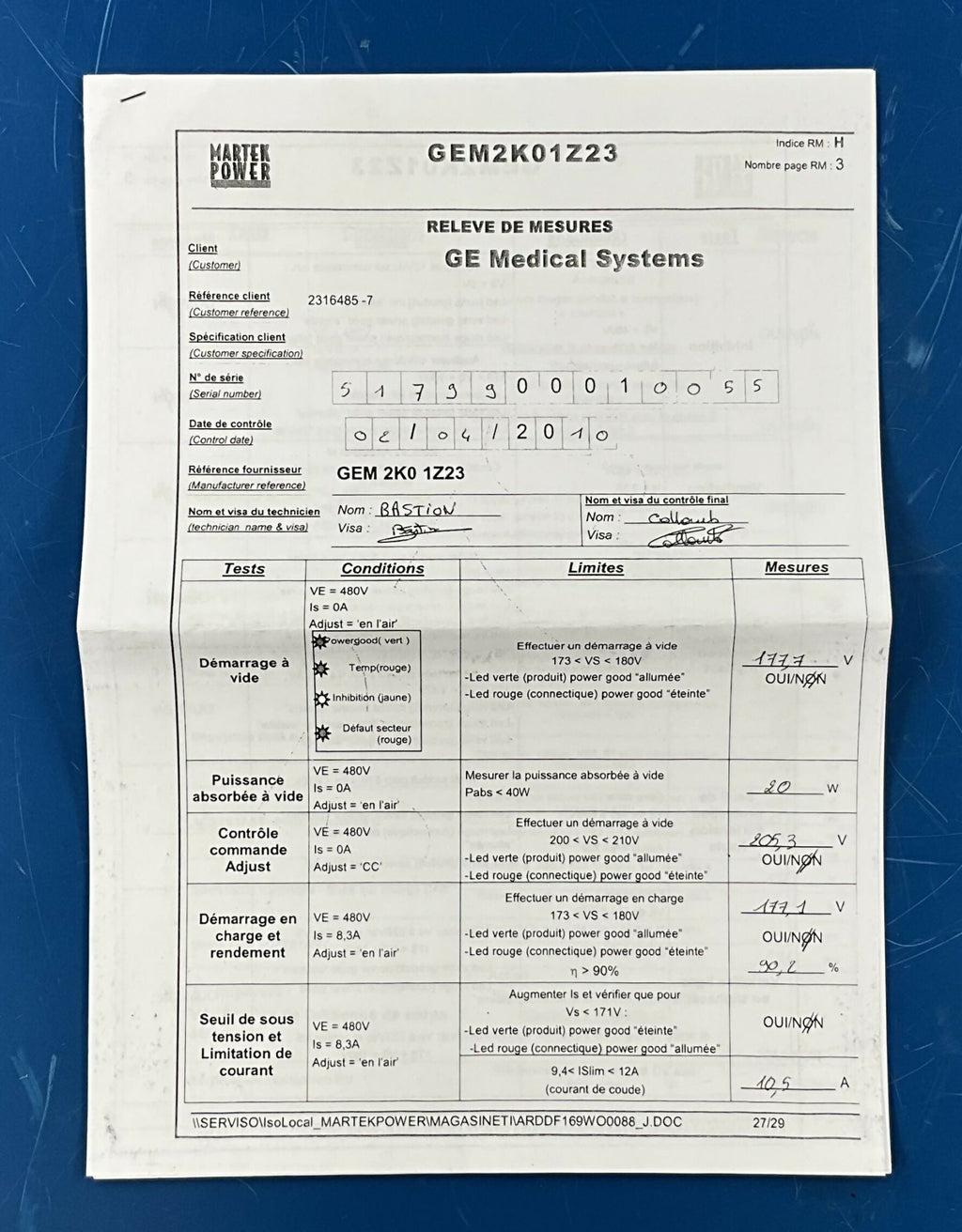 POWER SUPPLY MARTEK (2316485-7/GEM2K01Z23) GE